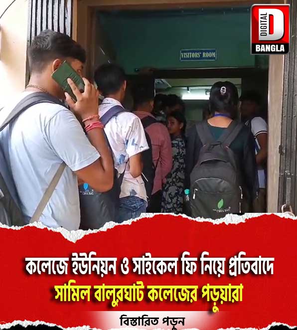 বালুরঘাট কলেজে ইউনিয়ন ফি এবং সাইকেল রাখার জন্য ফি আদায়ের প্রতিবাদে কলেজ অধ্যক্ষ পঙ্কজ কুমার কুন্ডুর সঙ্গে দেখা করল একদল ছাত্রছাত্রী। তারা জানান, কলেজ কর্তৃপক্ষের এই সিদ্ধান্ত সম্পূর্ণ অযৌক্তিক।