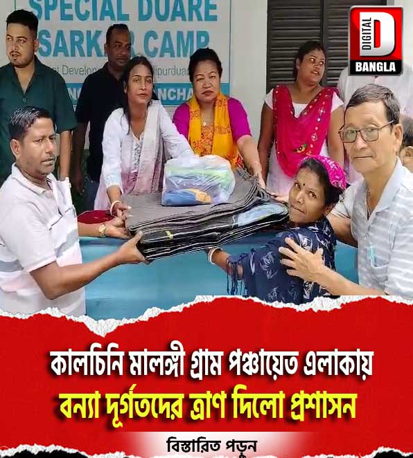 কালচিনি বিডিও জানান মালঙ্গী গ্ৰাম পঞ্চায়েত সুভাষিনি এলাকায় বাঁধ ভেঙ্গে এলাকার নদী লাইন প্লাবিত হয় এছাড়া ভার্ণাবাড়ি, পার মালঙ্গী এলাকায় কিছু এলাকা প্লাবিত হয় আজ সবার হাতে ত্রাণ তুলে দেওয়া হয়।