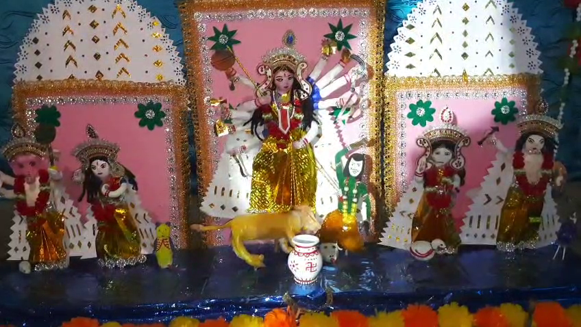 জলপাইগুড়ির মোহিতনগরে ক্ষুদে শিল্পীদের হাতে অনন্য দূর্গা প্রতিমা, তাক লাগালো সকলকে।দূর্গা পুজো মানেই আড়ম্বর, থিম, আলো আর জনজোয়ার। কিন্তু এবার জলপাইগুড়ির মোহিতনগরে নজর কেড়েছে একদল স্কুলপড়ুয়ার হাতে গড়া একেবারেই ভিন্নধর্মী দূর্গা প্রতিমা। ছোট ছোট হাতের অসাধারণ শিল্পকর্ম আজ আলোচনার কেন্দ্রে। মোহিতনগরের অষ্টম ও নবম শ্রেণির কয়েকজন ছাত্রছাত্রী শুধুমাত্র পুরনো খবরের কাগজ রিসাইকেল করে, তার সঙ্গে ক্লে, থার্মোকল, ফেব্রিক, স্টোনস ও আঠা ব্যবহার করে তৈরি করেছে নজরকাড়া দুর্গা প্রতিমা। তাদের সৃজনশীলতা দেখে অবাক স্থানীয় বাসিন্দারাও।