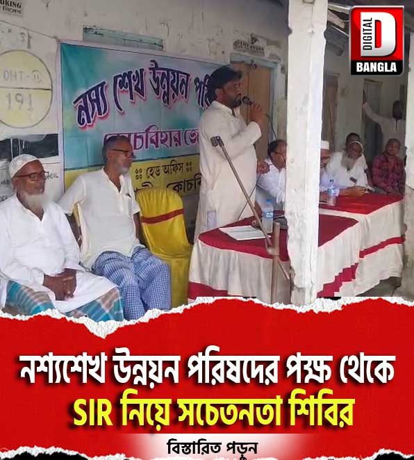 SIR নিয়ে নশ্যশেখ উন্নয়ন পরিষদের পক্ষ থেকে চৌধুরীহাট গ্রাম পঞ্চায়েতের খাটামারি বাজার প্রাইমারি স্কুলের মাঠে সচেতনতা শিবিরের আয়োজন। শনিবার দিনহাটা ২ নং ব্লকের চৌধুরীহাট গ্রাম পঞ্চায়েতের খাটামাড়ী বাজার প্রাইমারি স্কুলের মাঠে নশ্যশেখ উন্নয়ন পরিষদের পক্ষ থেকে SIR নিয়ে সাধারণ মানুষকে সচেতন করতে এই সভার আয়োজন করা হয় । সভায় উপস্থিত ছিলেন নস্যশেখ উন্নয়ন পরিষদের ভাইস চেয়ারম্যান আমিনাল হক, সম্পাদক মিঠু রহমান সহ আরো অনেকেই।