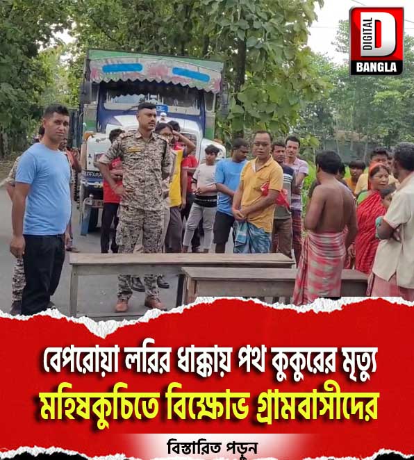 বেপরোয়া লরির ধাক্কায় পথ কুকুরের মৃত্যু, মহিষকুচিতে বিক্ষোভ গ্রামবাসীদের
