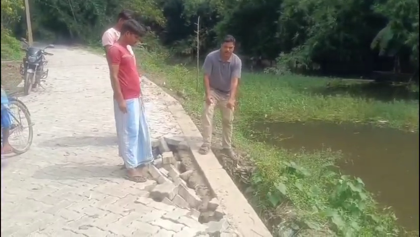 ভেঙ্গে পড়ছে রাস্তা ক্ষোভ গ্রামবাসীদের , প্রতিবাদ করায় ঠিকাদারের হুমকির অভিযোগ