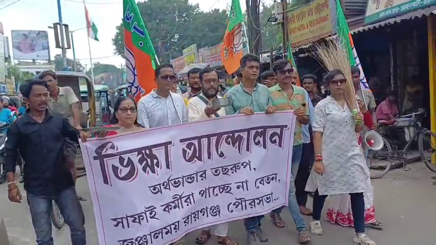 রায়গঞ্জ শহরে পৌর পরিষেবা সহ পৌরসভার বিরুদ্ধে একাধিক অভিযোগ তুলে বিক্ষোভ সামিল হল বিজেপি। শনিবার দুপুরে রায়গঞ্জ শহরে প্রতীকী ভিক্ষা করে মিছিল করে বিজেপির কর্মী সমর্থকরা। এদিন দুপুরে বিজেপি নেতা অভিযোগ করেন রায়গঞ্জ পৌরসভা নাগরিক পরিষেবা দিতে ব্যর্থ,শহরের রাস্তাগুলো জঞ্জালে ভরে উঠেছে ,সাফাই কর্মীদের বেতন বোনাস কিছুই দেওয়া হয়নি,এদিন থালা বাটি হাতে নিয়ে রাস্তায় ভিক্ষে চেয়ে প্রতিবাদ করেন তারা।