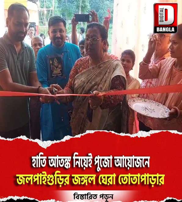 জঙ্গল ঘেরা তোতাপাড়ার পুজোর সূচনা। হাতি আতঙ্ক নিয়েই পুজো আয়োজনে রিমা ওঁরাওরা।পুজোর উদ্বোধন সারলেন বনদফতরের জলপাইগুড়ি ডিভিশনের ডি এফ ও বিকাশ ভি।ডুয়ার্সের মরাঘাট বনাঞ্চলের এক প্রান্তে তোতাপাড়া জঙ্গল।আর এই জঙ্গলেই ১৮ বছর আগে বনাধিকারিকের হাত ধরে পুজো শুরু হয়েছিল।সেই দিন থেকে এই বনবস্তির মানুষেরা পুজোর আনন্দের স্বাদ পেয়েছিল।তবে তোতাপাড়ার পুজোর আনন্দ শুধু দিনেই।রাত বাড়লেই বন্যপ্রানীর দখলে চলে যায় এই এলাকা।