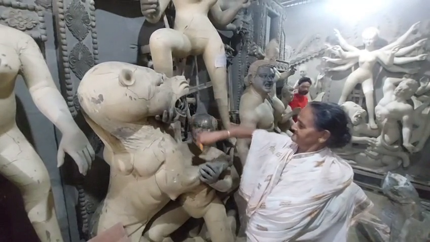 তবে বিভিন্ন এলাকায় কুমোরটুলিতে যেখানে দেখা যায় পুরুষরাই দেবী মুর্তি তৈরি এবং সাজানোর কাজ করে থাকেন সেখানে এই বৃদ্ধা অবিরাম এই কাজ করে চলেছেন।