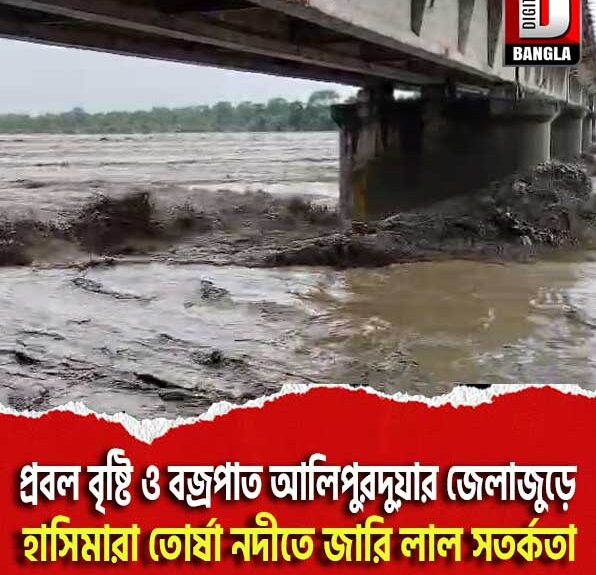 প্রবল বৃষ্টি ও বজ্রপাত আলিপুরদুয়ার জেলাজুড়ে, হাসিমারা তোর্ষা নদীতে জারি লাল সতর্কতা