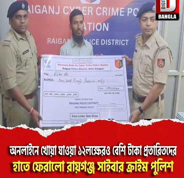 অনলাইনে খোয়া যাওয়া ১২লক্ষেরও বেশি টাকা প্রতারিতদের হাতে ফেরালো রায়গঞ্জ সাইবার ক্রাইম পুলিশ
