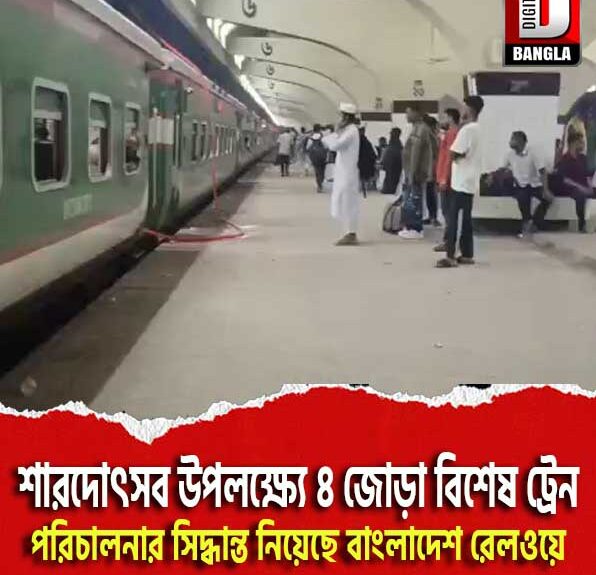 Read Moreশারদীয় দুর্গাপূজা উপলক্ষে যাত্রীদের বাড়তি চাপ সামলাতে ৪জোড়া বিশেষ ট্রেন পরিচালনার সিদ্ধান্ত নিয়েছে বাংলাদেশ রেলওয়ে।বৃহস্পতিবার রেলপথ মন্ত্রণালয়ের সম্মেলন কক্ষে রেলপথ মন্ত্রণালয়ের সচিব মো. ফাহিমুল…